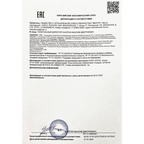 Комментарий: Очень понравился эффект от капель. Принимаем вдвоем с мужем. Действуют и на него, и на меня. Хороший возбуждающий эффект, новые ощущения.