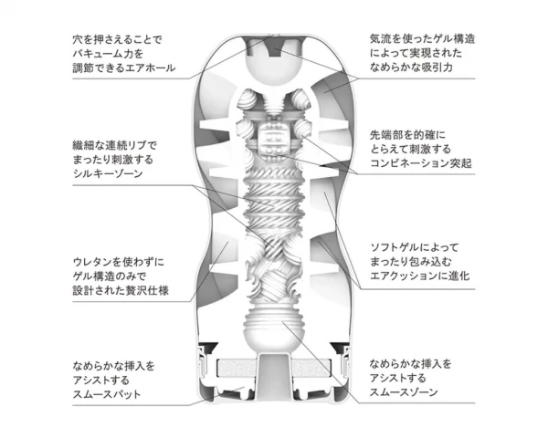 Модели "Tenga" 2023 года выполнены из улучшенного материала и имеют усовершеноствованный внутренний рукав. Тубус Gentle белого цвета говорит о том, что это самый нежный мастурбатор в линейке